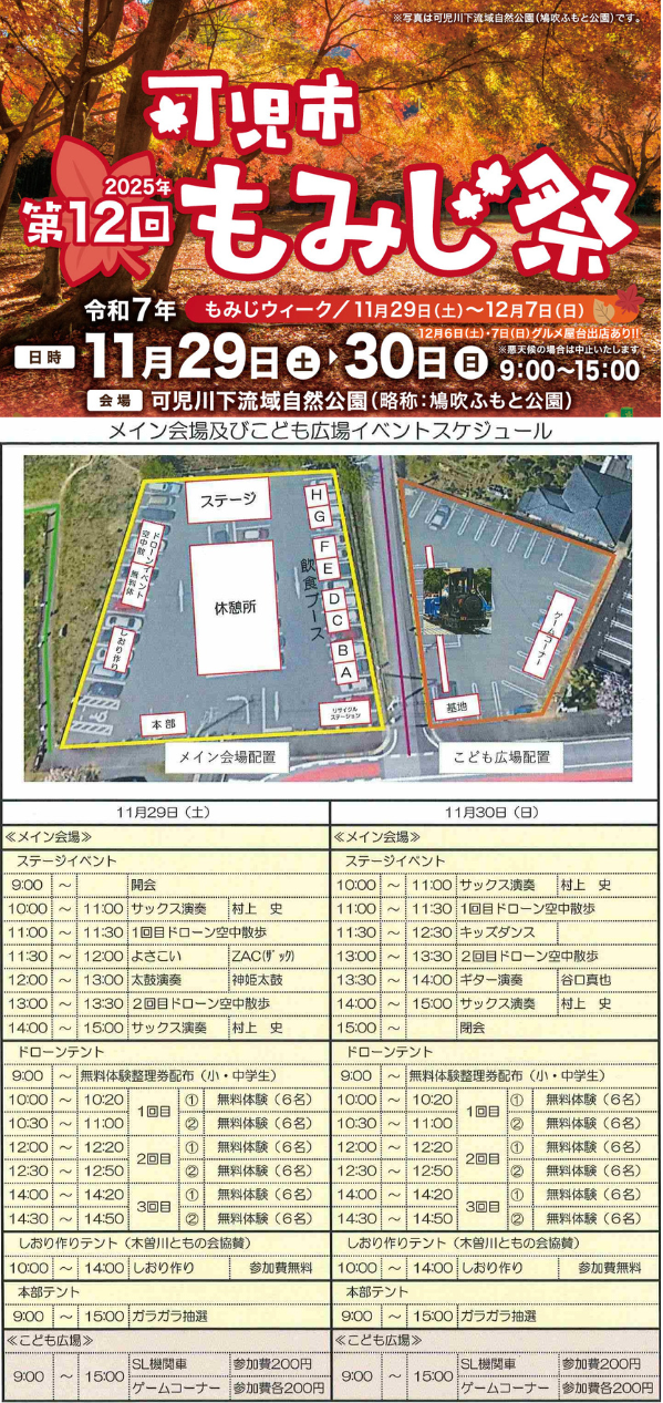 もみじ祭いメイン会場及びこども広場イベントスケジュール